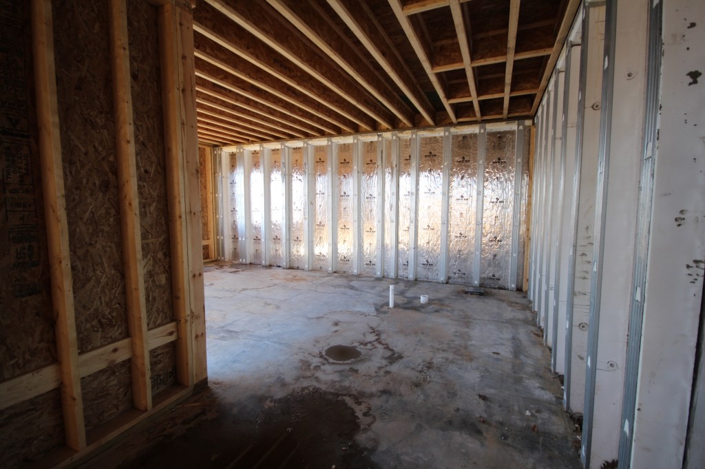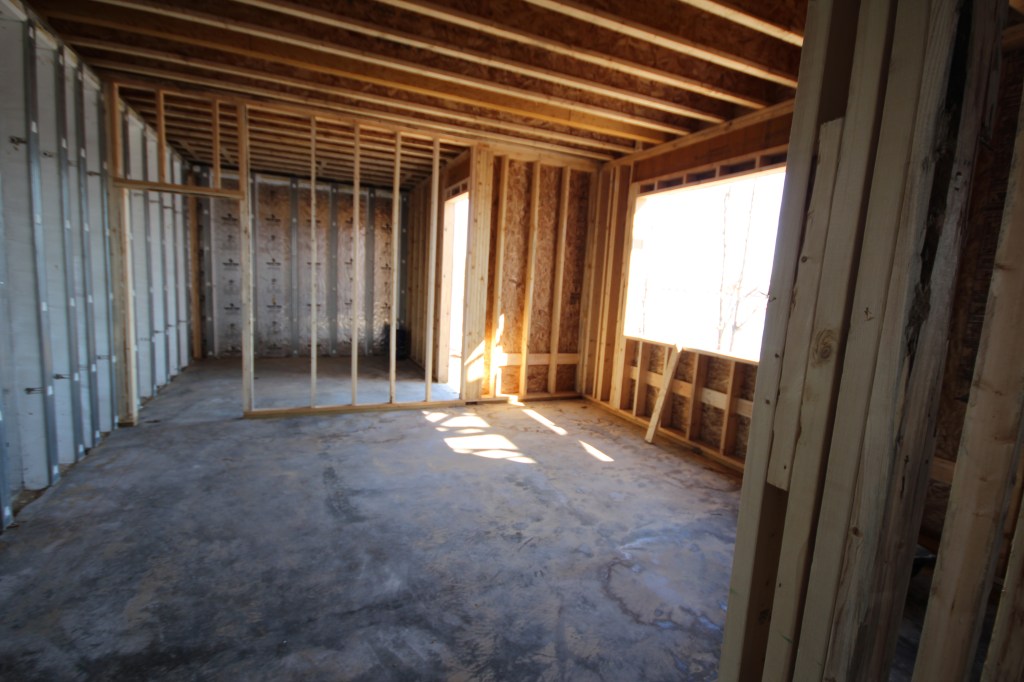 A couple of views from the lower level. The first is one of the bedrooms followed by a storage room with access to the exterior. Second photo is the entrance to the workout area that is prepped for a bathroom in the corner.
