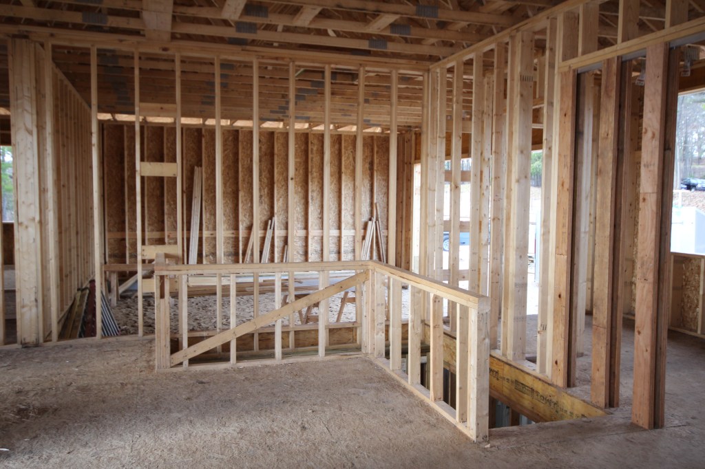 After careful consideration we opted for the framers suggestion to eliminate the full wall surrounding the staircase and make it a half-wall. Not only will the new wall allow more light into the stairway it also make the kitchen seem that much larger.